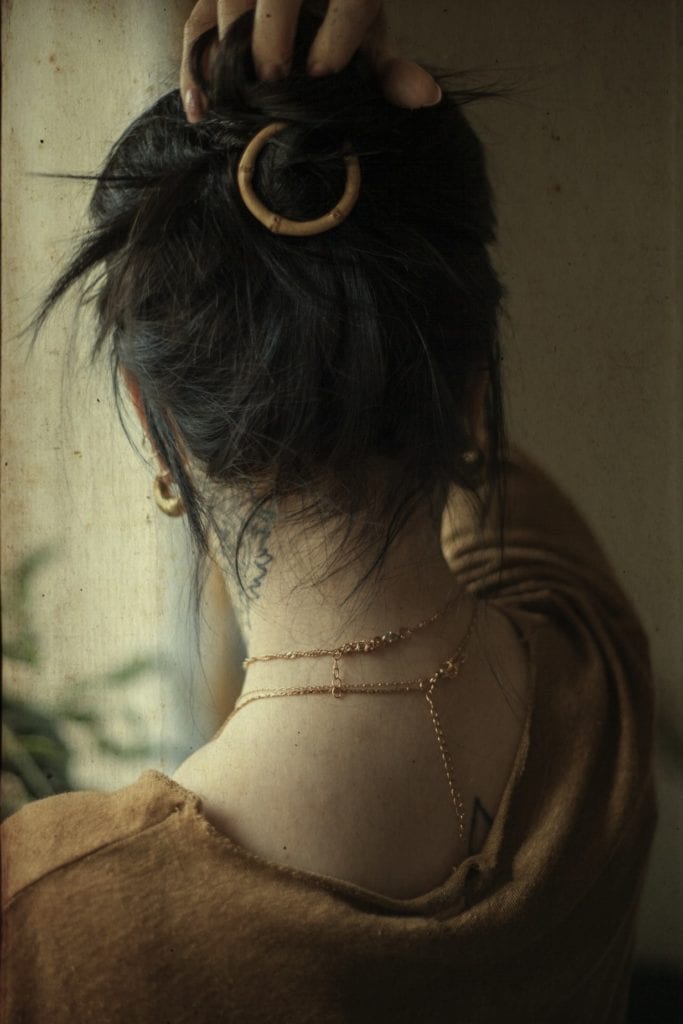 This comes in handy when linking the pieces of an outfit: Black Feathered Dress Shirt, Dark Skinny Trousers and High Top Shoes.
